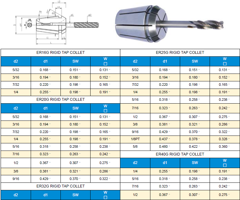 CD01-0006 ERG型攻牙筒夹 英制规格